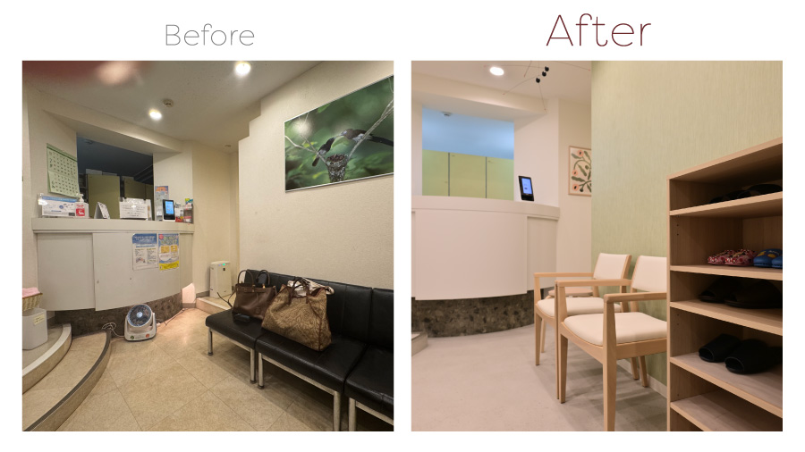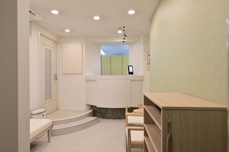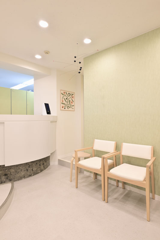 無機質を抑えるために柔らかなグリーンを。 視覚的なあかるさと、まなざしのあるケアで患者様の緊張をほぐし丁寧に寄り添います。 歯を「治す」だけでなく、「育てる」こと。その一歩一歩を、信頼とともに支えていきます。