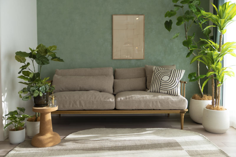 ソファでひと息つき、何もしない時間が、心をそっと整えてくれる空間です。