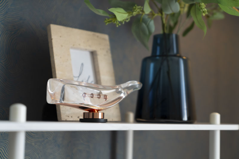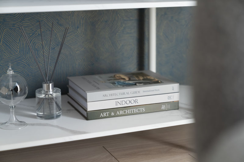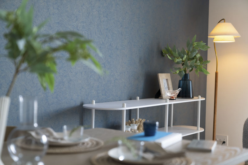 波の流れや深海の揺らぎを映した壁紙を軸に、海のモチーフは“象徴”としてさりげなく配置。